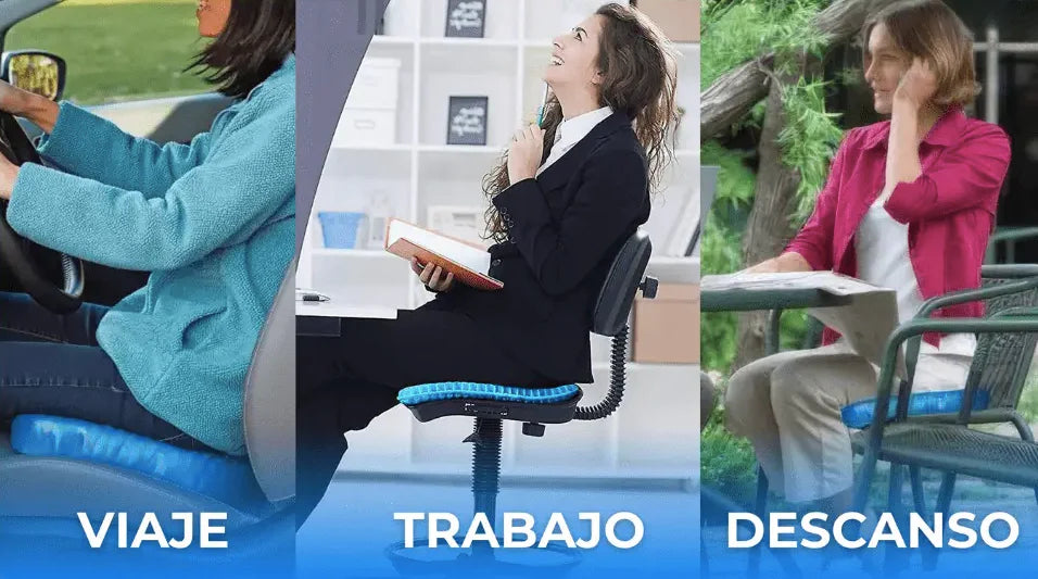 Gelaxis distribuye el peso uniformemente, reduciendo la presión en la espalda baja y el cóccix, aliviando dolores como ciática.